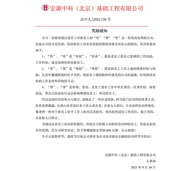 值此教師節,公司特此獎勵擔當培訓講師的優秀人員,感謝他們為公司培訓工作做出的貢獻。同時祝愿所有擔任培訓講師的人員節日快樂!